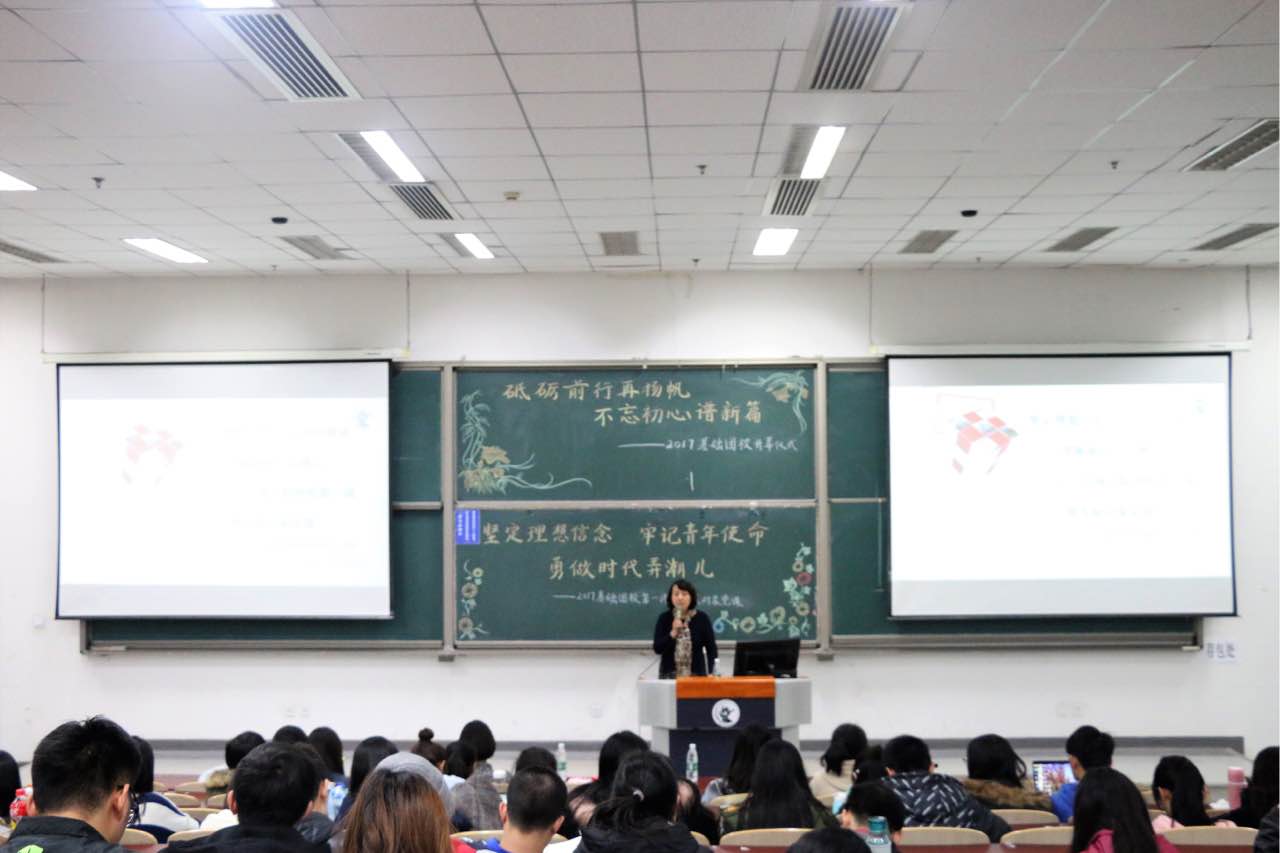 最后,王容老师对全体入党发展对象、全体团校学员提出希望。希望每一名入党发展对象、团学骨干都能认真踏实的学习十九大报告内容,体会报告字里行间中党和国家对青年寄予的殷殷期望。“青年兴则国家兴、青年强则国家强”。每一名青年学子都承载着国家前途、民族希望,中国梦以及中华民族伟大复兴的使命。王容老师勉励在座的每一位同学应该志存高远、脚踏实地,肩负起国家发展的重任,积极投入到实现中华民族伟大复兴的事业中去。讲座最后,王老师用习近平总书记提出的“撸起袖子加油干”作为结语,希望同学们努力学习专业知识,积极参加到各种实习、实践、志愿活动中去,不断提高个人修养,努力丰富人生经历。