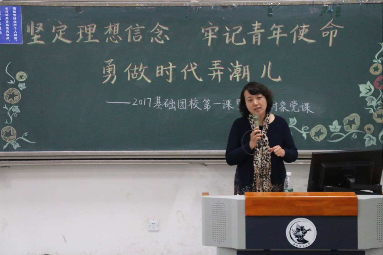 王容老师在党课第一部分首先就青年学子为什么要进行理想信念教育谈起。她从理想信念与意识形态的逻辑关系、理想信念的政治性、理想信念的三个属性——时代性、强制性、国际性,以及我国宪法对意识形态教育的规定几个方面对青年学子为什么要进行社会主义理想信念教育做了详实阐述。之后,王容老师用“和平演变”、“苏联解体”等例子,从历史学的角度为同学们展示了理想信念不坚定、意识形态混乱带给国家、民族、人民的历史恶果和沉痛教训,并结合我国当今所处的世界政治环境,强调了意识形态工作的重要性。