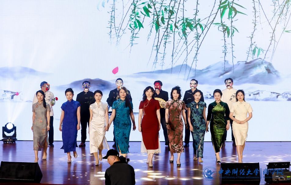 最后,走秀《青衫烟雨客》惊艳亮相,左梦媛、武亚楠等同学身着新中式服饰,袅袅婷婷,尽显古典优雅。林嵩、刘小元、陈金亮、朱飞、张光利、卢继周等六位老师风度翩翩,面具脱下的那一刻,观众的惊喜与赞叹化作一阵阵掌声和欢呼。这一节目为这一篇章画上完美的句号。