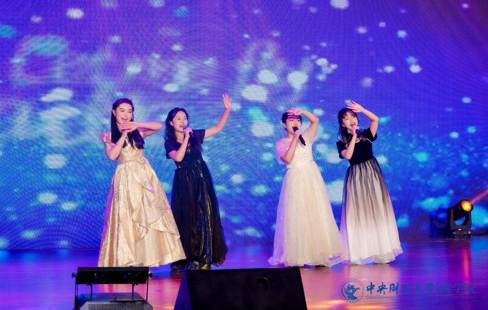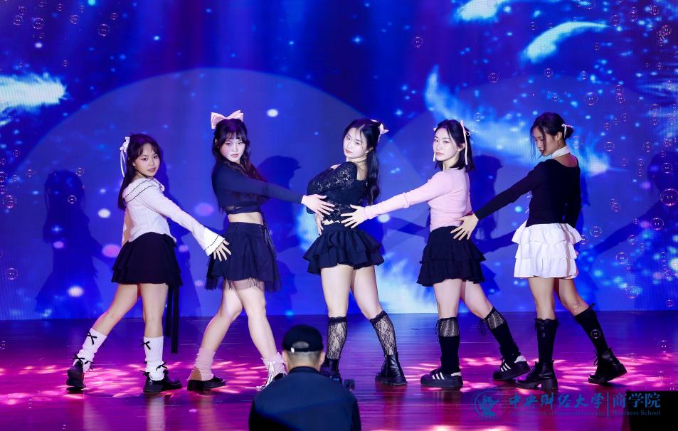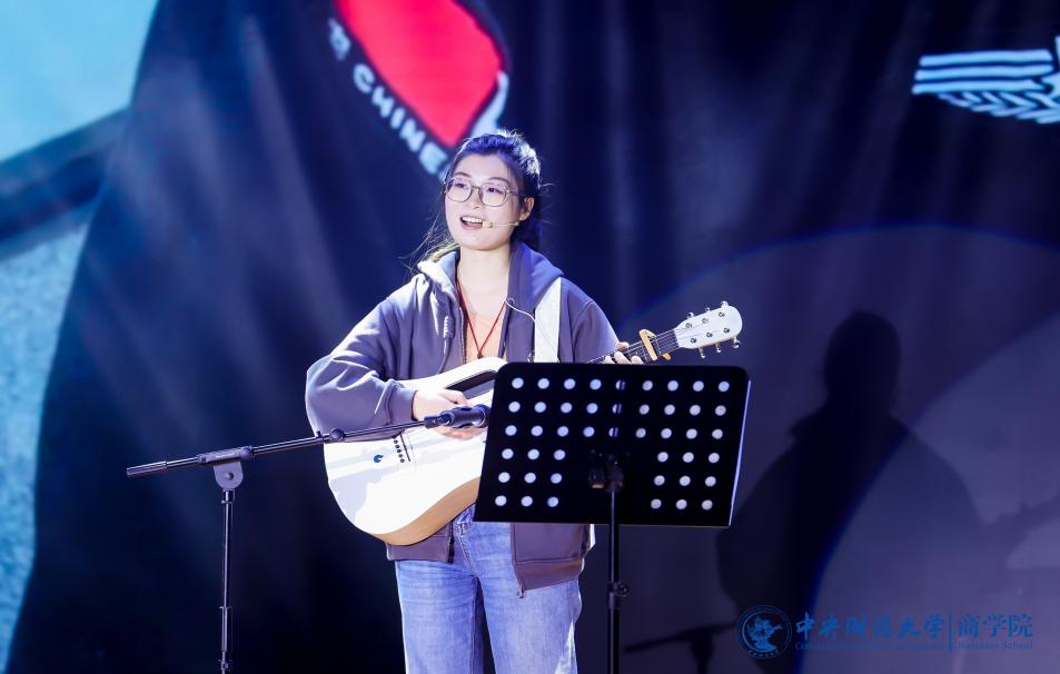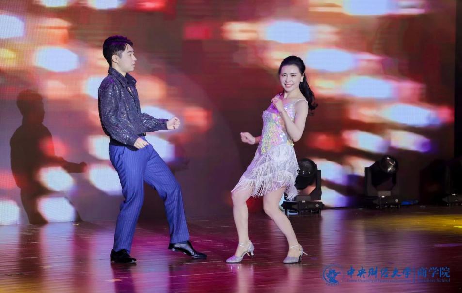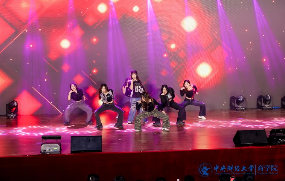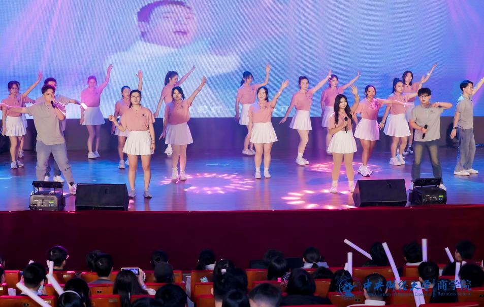 张赫演唱的《输了你赢了世界又如何》饱含深情,低音深沉,高音清亮,触动着观众的心。充满青春活力的2024级MBA产教融合班(P10班、P11班)带来了舞蹈《舞动奇迹》,热情洋溢,富有感染力,欢快的节奏引发全场跟着摇动。