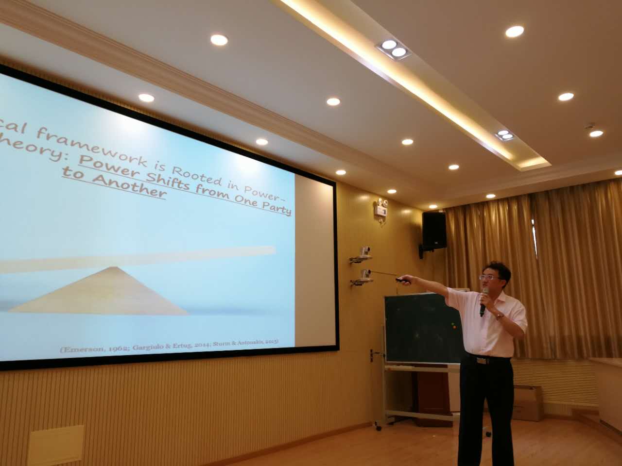 研讨会上,刘东副教授向与会师生介绍了自己发表在管理学顶级期刊Academy of Management Journal上关于追随力的最新研究。该研究基于权力依赖理论,研究了下属如何主动对辱虐型领导施加影响。刘东副教授以此文章为例,坦诚分享了如何“独特而不离群”地去进行有创造性的研究,并总结出模型出现新的变量、令人感到惊奇的结论、坚实的理论基础、有逻辑和说服力的论述、信效度较高的测量、先进的分析方法等10条在顶级期刊发表文章的基本准则。