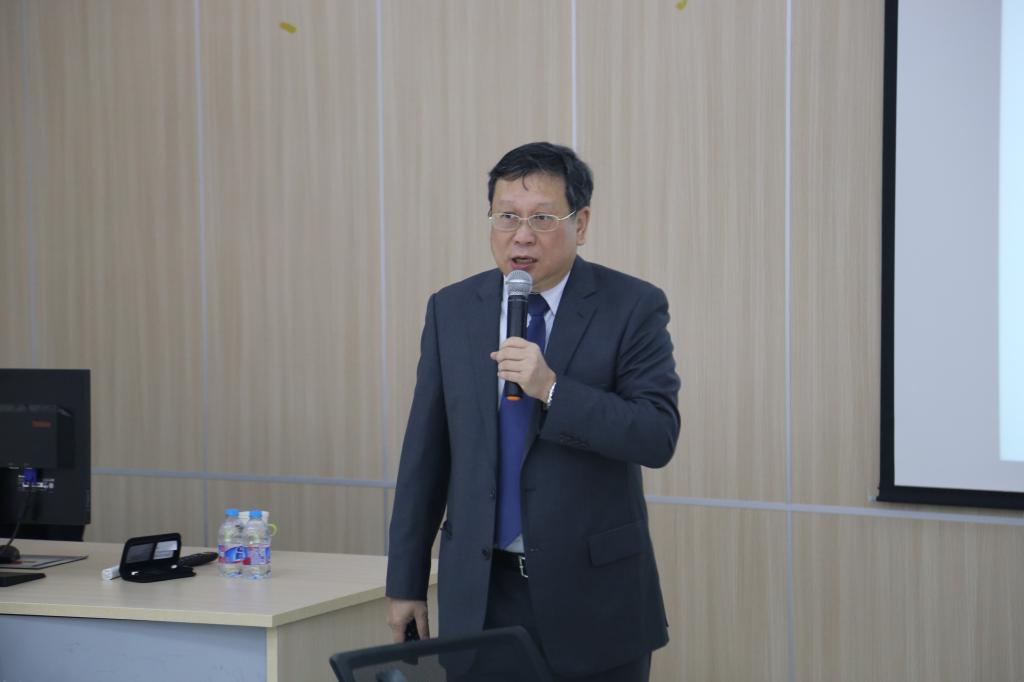 会谈结束后,魏国基教授在MBA中心A02教室面向公司全体教师进行了主题讲座,针对AACSB认证中的课程管理和保障体系(AOL)进行了详细的讲解说明。