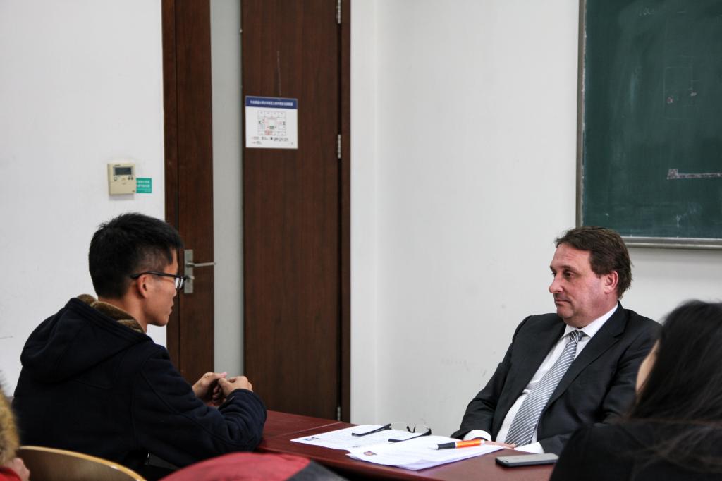 Peter Anterist教授对报名海外实习的员工进行面试选拔