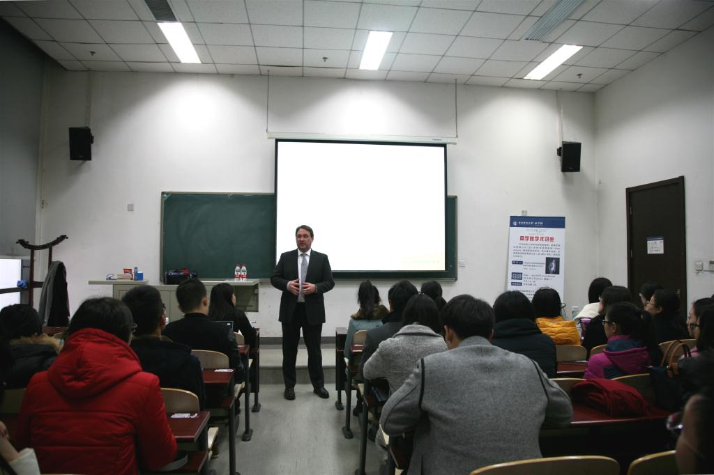 2月29日 下午,Peter Anterist教授在沙河校区举办了一场学术讲座,Peter Anterist教授结合实际案例讲解了企业在拓展海外市场过程中常见的十个误区,并与同学们就国际化背景下企业是否应该扩展海外市场、应如何扩展海外市场等问题展开了深入探讨。PA视讯集团官网学术型硕士研究生、MBA员工参加了讲座。