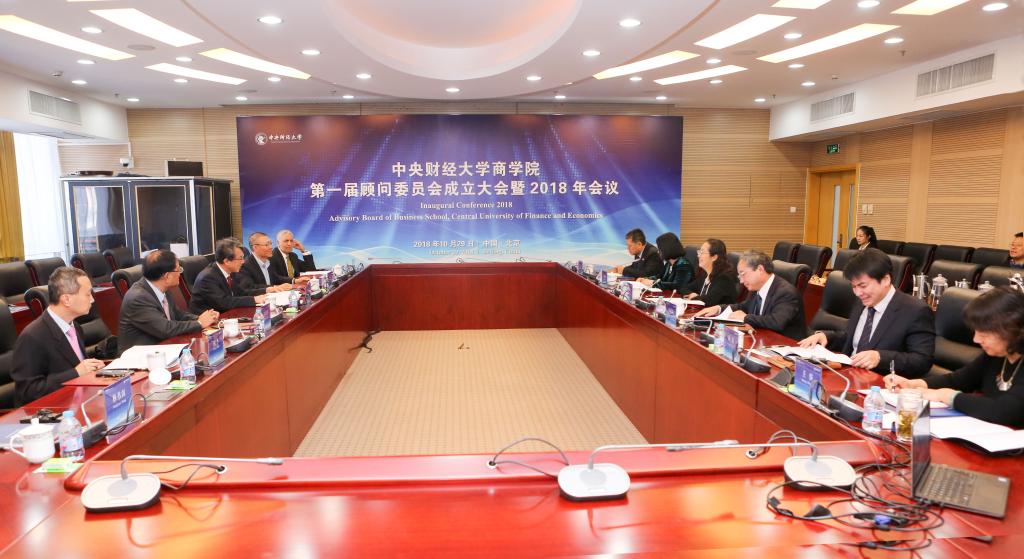 On October 29thThe Inaugural Conference 2018 of the Advisory Board of the Central University of Finance and Economics CUFE Business School was held in the Academic Assembly Hall. Professor Wang Yaoqi, President of CUFE, and Professor Li Tao, Assistant President of CUFE were among the attendees. Advisory Board Members of the CUFE Business School - Professor Ajay Vinzé, Dean of the University of Missouri Business School, Mr. Jin Peng, Director and General Manager for SINOLINK Securities, Professor Li Junsheng, former Vice President of CUFE, Mr.Tao Dong, Managing Director and Chief Economic Analyst for Credit Suisse AG Asia, Professor Wang Fanghua, former Dean of the Shanghai Jiao Tong University Antai College, as well as Mr.Yang Shujian, President of Bank of Beijing also attended the meeting. Additionally, all of the members of the CUFE Business School Board members were in attendence.