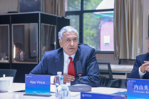 Professor Ajay Vinzé,Dean of the University of Missouri Business School, had a discussion regarding future collobaration withProfessor LinandProfessor Ge.Professor Ajay Vinzéalso gave a keynote speech titledUsing Data Riches: A Tale of Two Projectsto CUFE-BS students.Mr. Uchiyama Hideyo, former Chairman of AZSA KPMG Japan, give akeynote speechtitledAs theformer chairman of KPMG in Asia Pacific‐All what I want to tell youto CUFE-BS students.Dr. Tao Dong, Managing Director and Chief Economic Analyst for Credit Suisse AG Asia, gave a keynote speech titledTao DongSee the World, to CUFE-BS students.Mr. Deng Yiwu, President of the Sinograin Group,Professor Li Junsheng, former Vice President of CUFE and Chair of the Advisory Board,Mr. Uchiyama Hideyo, former Chairman of AZSA KPMG Japan,Dr. Tao Dong, Managing Director and Chief Economic Analyst for Credit Suisse AG Asia, were invited to attend the70thanniversary of CUFE event and sent their greetings.