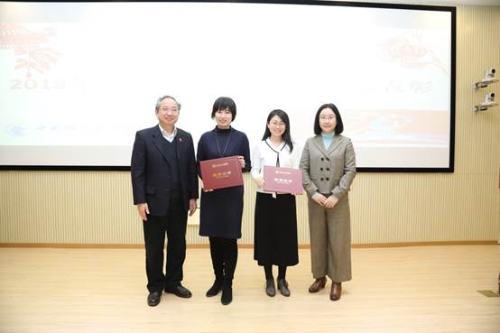 Lv Shijie and Zhou Lixin, alumni of Class 1986 and 1987, presentedawards to winners of the Prize for Advanced Individual in Alumni Work