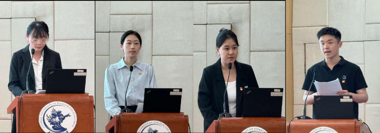 毕业生党员代表李萱芝、郑佳霓、周斐斐、许彤分别代表本科、硕士、MBA、博士毕业生党员发言。他们分享了参加党组织生活的回忆和收获,表达了对公司、党组织、老师以及同学们栽培和陪伴的感激之情。他们一致认为,个人理想与家国情怀紧密相连,唯有将青春奋斗融入党和人民事业,才能实现人生价值。作为毕业生党员,要牢记党员身份,精进专业本领,用大爱服务群众,用行动践行初心,以责任彰显担当,为扎实推进中国式现代化贡献商院力量。