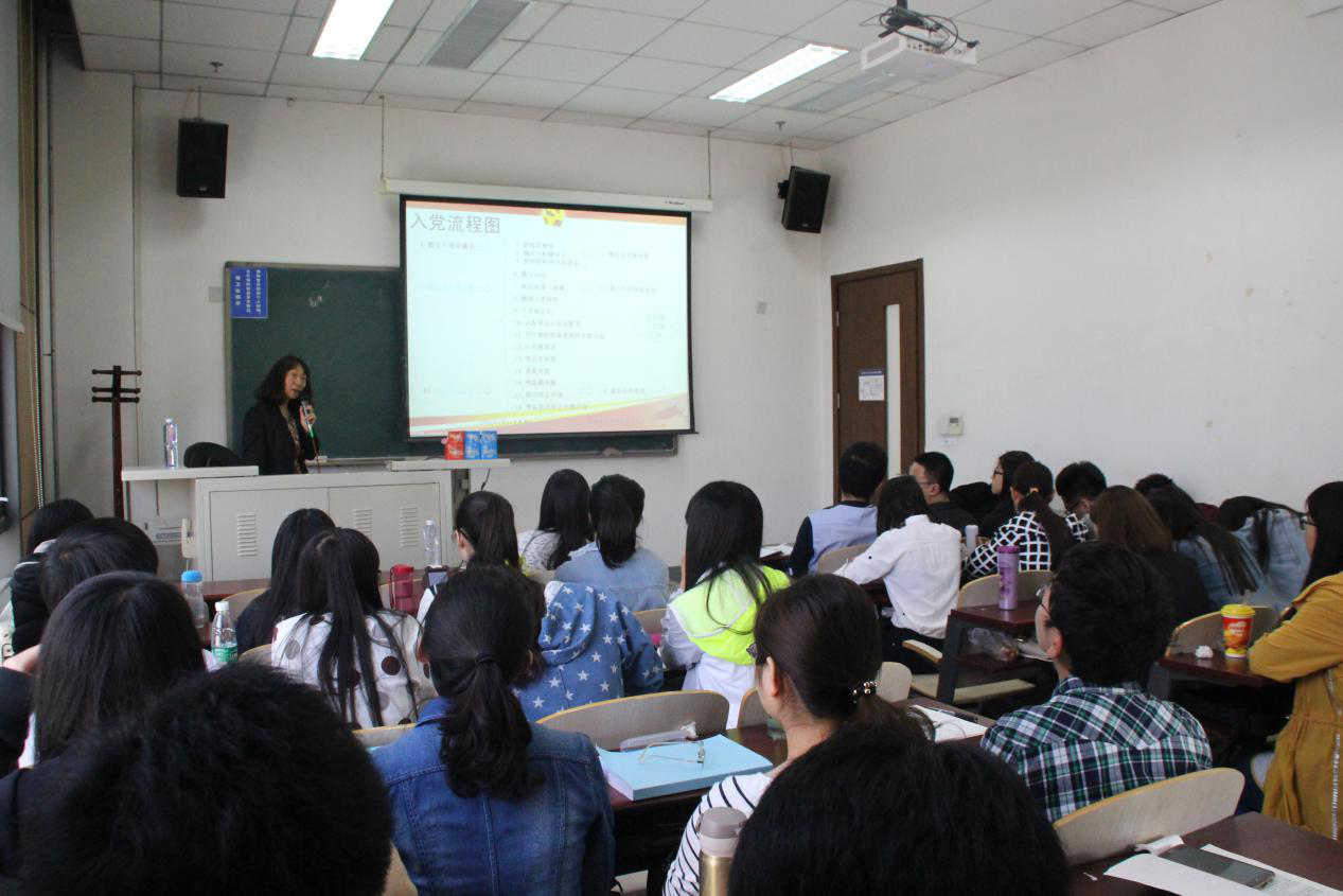 此次党课有一个深刻的主题——做合格的共产党员。韩老师从端正入党动机入手,围绕坚定理想信念角度展开党课。课程伊始,韩老师为所有积极分子推荐了几本必读书目——《中国共产党章程》、《共产党宣言》、《为人民服务》、《纪念白求恩》。这几份读物都可以帮助同学们对党组织有进一步的了解,并从中体会中国共产党人的精神内涵。党课中,韩老师着重为同学们介绍了党的性质,党员的条件、标准和义务以及从普通人到党员的过程。当介绍到我们敬爱的毛主席的时候,老师为大家细致分析了毛主席的胸怀和伟大的理想。结合毛主席气势磅礴的诗词如万类霜天竞自由数风流人物,还看今朝等等,我们不仅可以体会到毛主席投身革命事业的和决心,更能感受共产党先烈们奋不顾身敢为天下先的豪迈气概。积极分子们被韩老师的热情感染,被毛主席的伟大折服,为共产党先烈们的豪迈气概倾倒,听得聚精会神