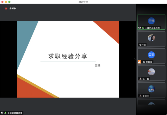 2021年春招正在进行,2021年的秋招也将逐渐来临。为提高2021届学硕同学的就业意识,同时为准备求职的同学提供经验参考,4月13日,2020级企管学硕研究生党支部联合班委开展“百名党员办实事——职引未来”秋招经验分享会主题党日活动。会议采取线上形式,特邀2021届毕业生王相谋、王臻、杨书雷3位同学进行经验分享。
