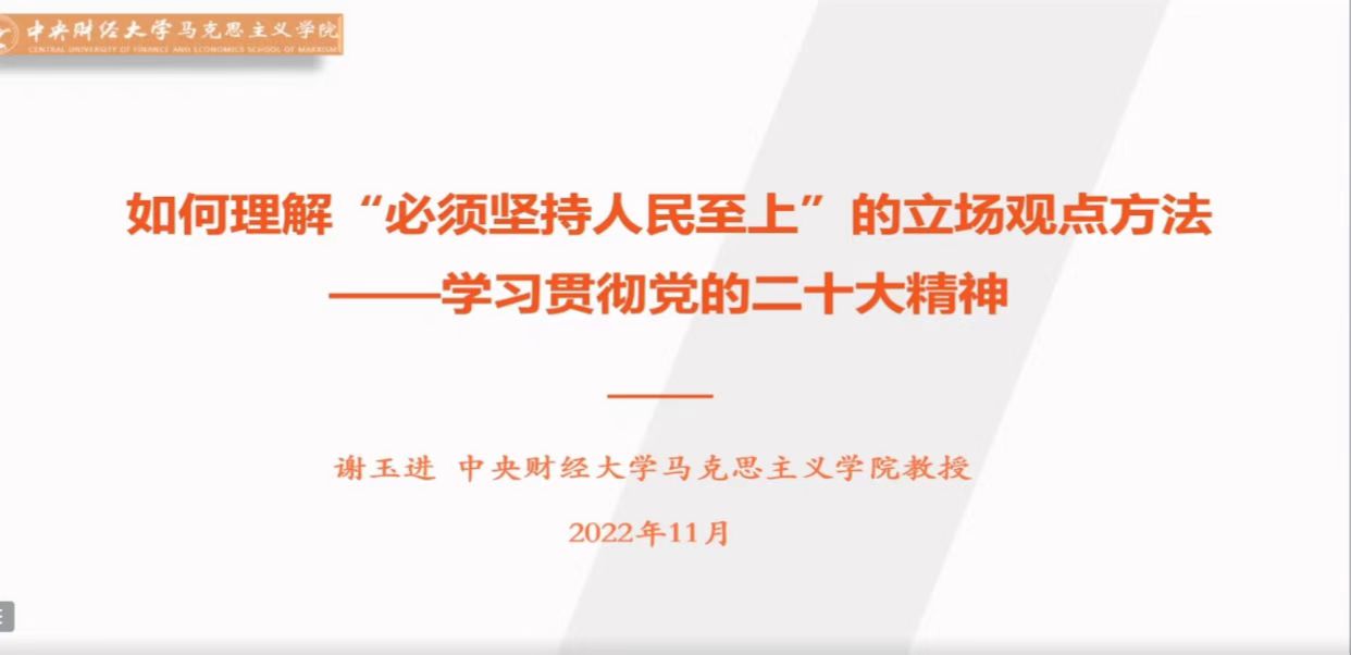 中国共产党第二十次全国代表大会于10月16日至22日在北京举行。为深入学习宣传贯彻党的二十大精神,把全党全国各族人民的思想统一到党的二十大精神上来,把力量凝聚到党的二十大确定的各项任务上来,根据《中共中央关于认真学习宣传贯彻党的二十大精神的决定》和公司党委有关工作要求,公司党委于11月2日下午1时,组织召开学习宣传贯彻党的二十大精神专题讲座,特邀公司马克思主义公司副经理谢玉进教授作“深入理解‘必须坚持人民至上’的立场观点方法——学习贯彻党的二十大精神”主题报告。PA视讯集团官网全体教师、员工党员、2022级新生通过线上、线下相结合的方式参加本次活动。