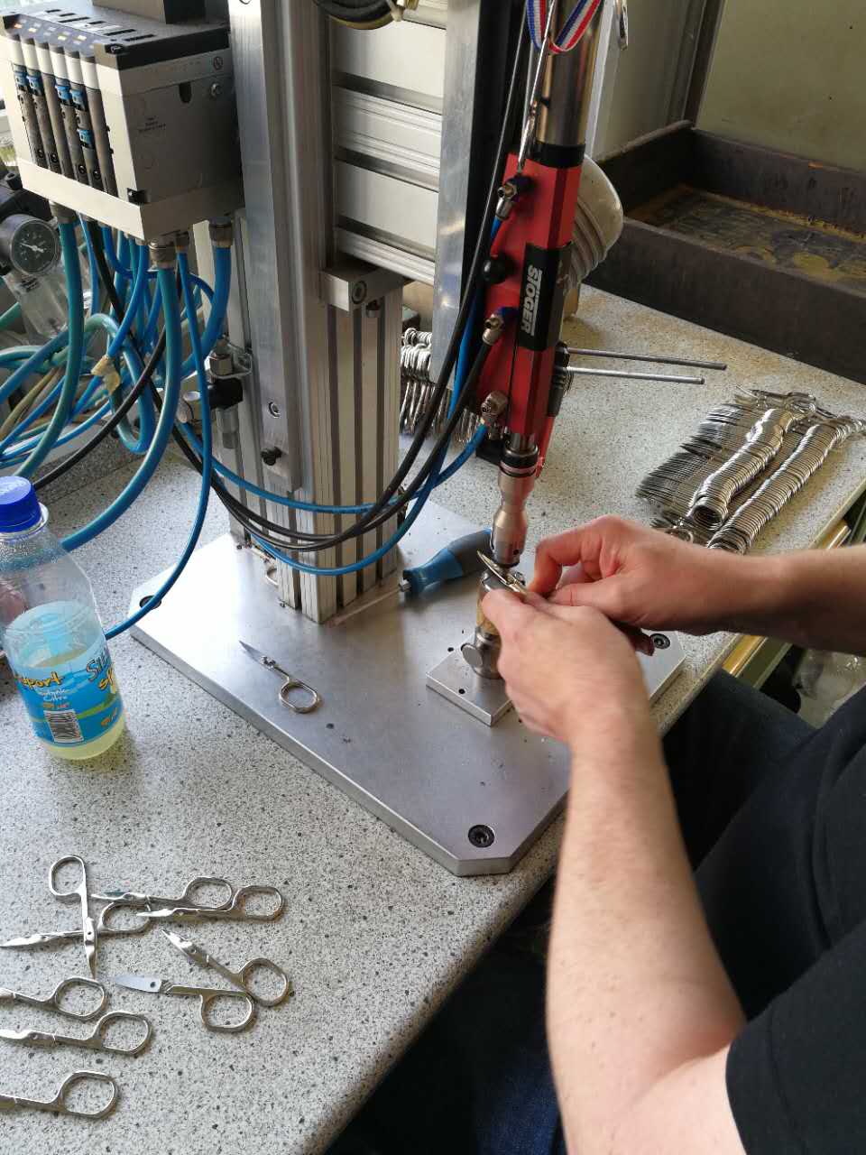 虽然建筑已经有百年历史,但生产技术却在不断更新换代,从人工到自动化,很多年长的工人在车间已经工作了几十年之久,他们是工匠精神的传承者,也是技术进步的推动者。9月19日,一个中国商务考察团来公司拜访,这是一个由广东阳江市政府组织以当地刀剪制造企业组成的团队。我全程参与了短短一个小时的参观过程。会议室里CEO介绍了公司的历史和主要产品,然后带大家参观了工厂车间。一个来访的企业家告诉我,中国和德国的技术还存在很大差距,但中国的进步非常快,政府也很重视,很多企业之前主要给国外品牌做代工,现在大家在努力打造自己的品牌。