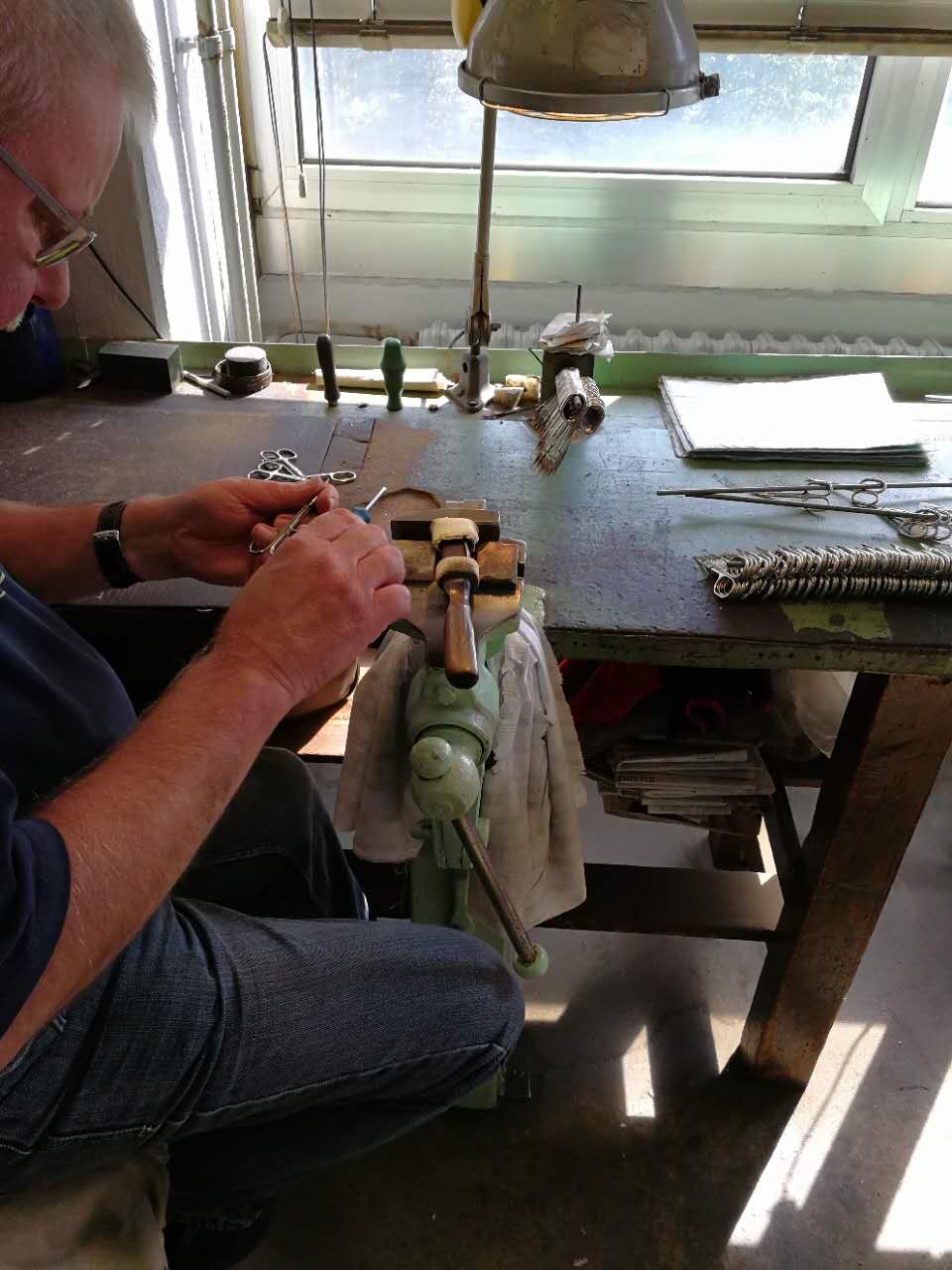 来到公司的第一天,部门同事Denis带我参观了公司的各个职能部门。虽然这里生产的每个产品都精致如艺术品,一个小剪刀、小镊子市价都要十几甚至几十欧元。但品牌背后的实体企业却朴实得甚至有些老旧。深红色的砖墙,棕褐色的木门,没有花哨的装饰,好产品才是唯一的追求。在德国,很多优秀的公司都是家族企业,Pfeilring也不例外。工作间隙大家像家人一样问候,但工作中,都各司其职,一丝不苟。在这个崇尚工匠精神的地方,严谨认真被每一个人高度贯彻着。