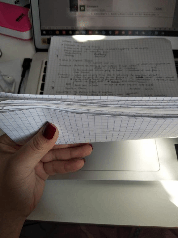 8、做笔记很重要,因为老师的ppt虽然会给到我们,但是有很多东西是不在ppt上的,需要你听到就写下来,我现在基本上可以达到写英语和写中文一样速度甚至有时候比写中文还要快,这样才能够保证我在老师说完一句话的时候就很快写下来,还留给我时间思考。