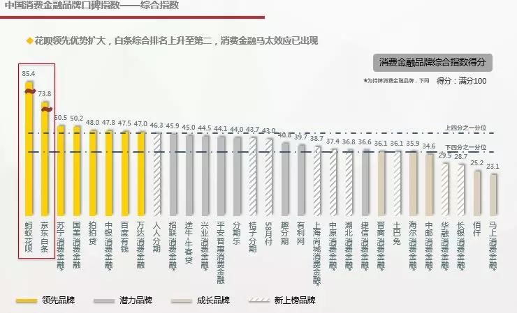 “2017年度消费金融口碑指数”经过全面分析之后,认为当前消费金融市场马太效应开始显现,电商系巨头发展势头仍然迅猛;持牌系品牌大多表现稳健,正规军优势初显;而新上榜品牌在感知质量建设方面成效显著,看好次年认知水平上升。