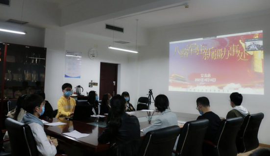 新疆财经大学国际经贸公司国贸系党支部员工代表介绍了八路军驻新疆办事处,再现了1937年—1942年以陈云、邓发、等为代表中国共产党人在新疆进行抗日救亡运动和不屈不挠狱中斗争的历史全貌。