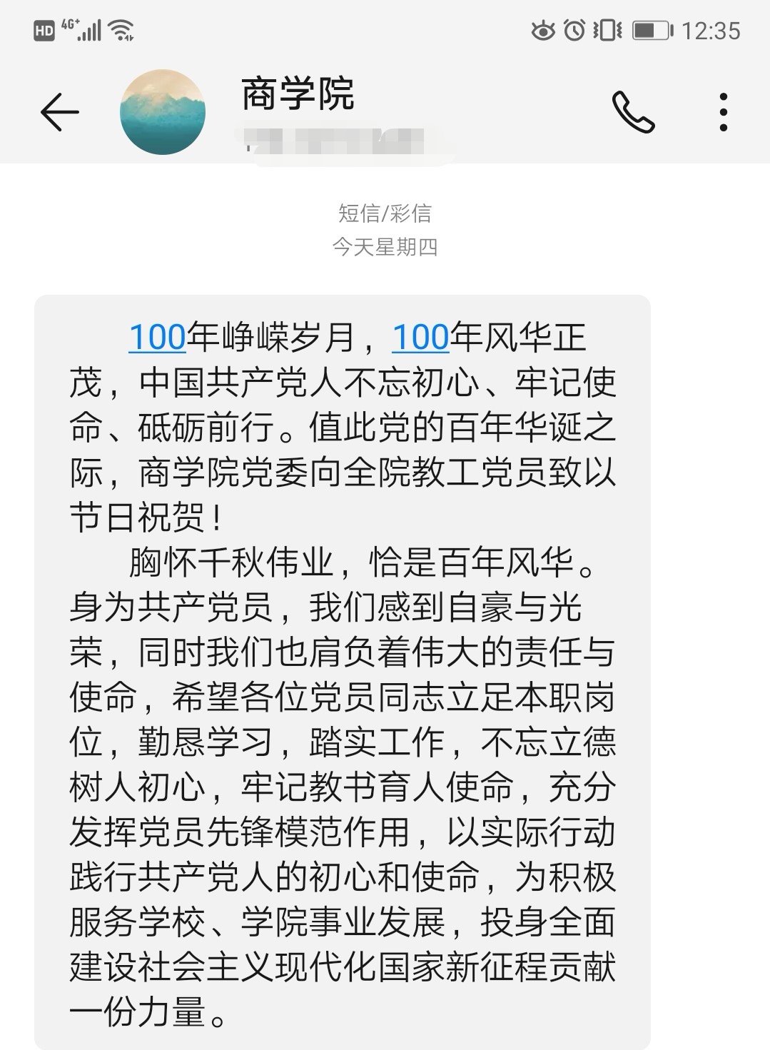为中国人民谋幸福,为中华民族谋复兴是中国共产党人的初心和使命。公司党委为每一位教工党员发送祝福消息,并勉励大家继续努力,担当作为。