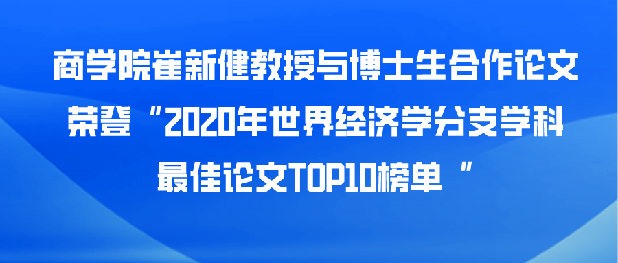PA视讯集团官网崔新健教授与博士生合作论文荣登“2020年世界经济学分支学科最佳论文TOP10榜单“